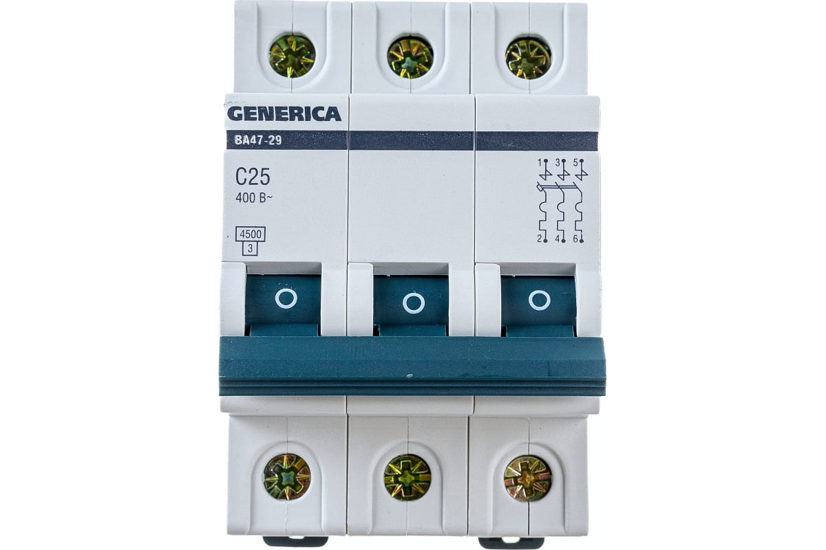 Технические характеристики GENERICA ВА47-29 3Р 25А 4,5кА х-ка С MVA25-3-025-C