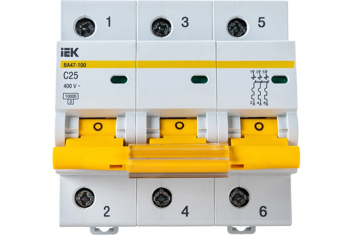 Технические характеристики IEK ВА 47-100 3п C 25А 10кА MVA40-3-025-C