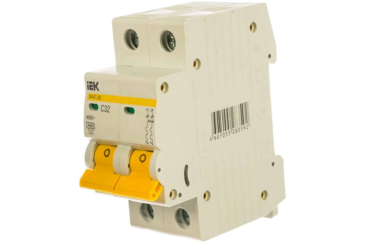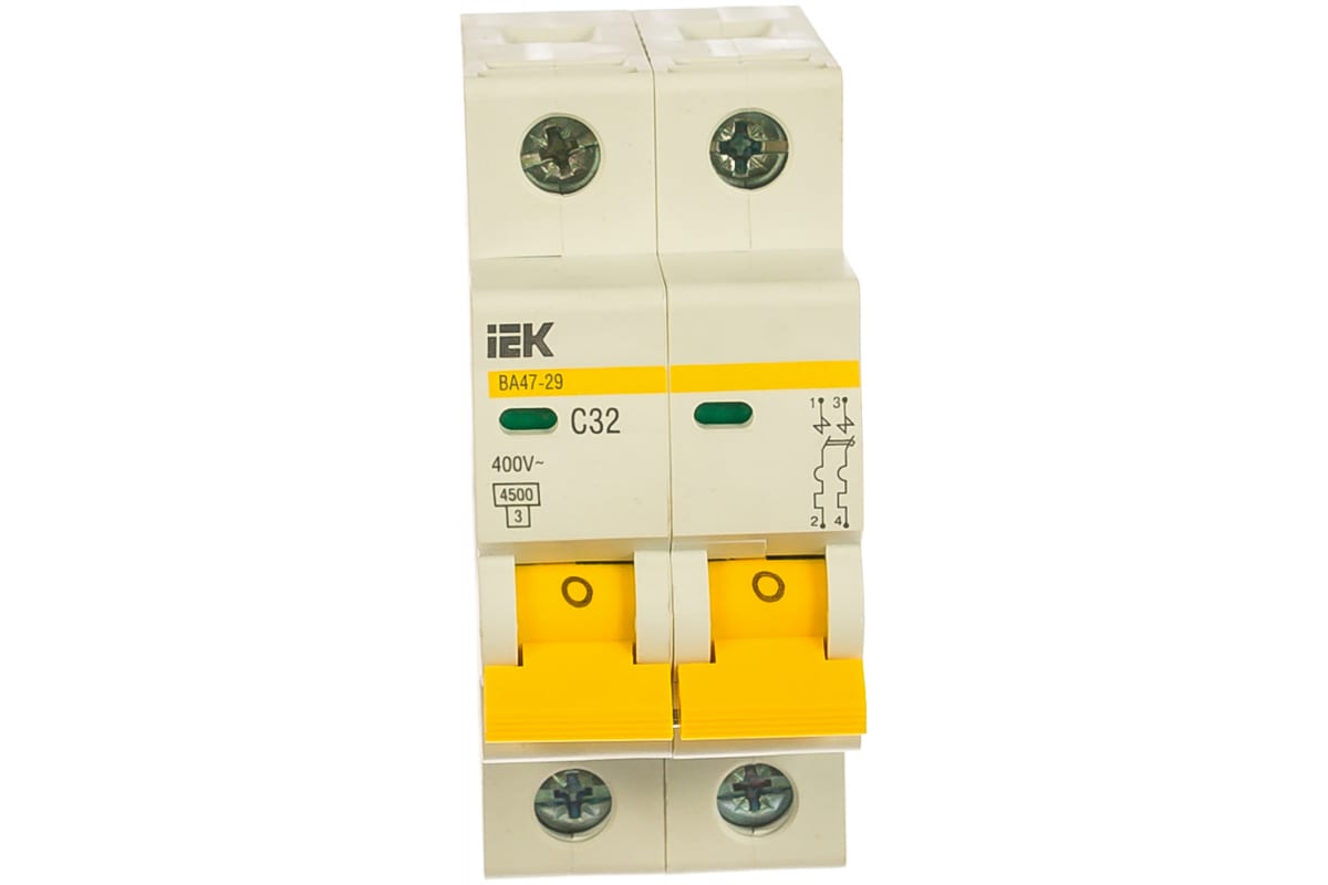 Технические характеристики IEK ВА47-29 2п, 32А, C, 4.5кА MVA20-2-032-C