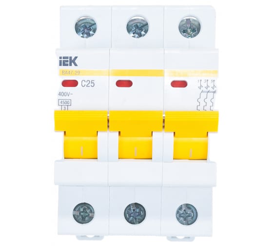 Преимущества IEK ВА47-29 3п, 25А, C, 4.5кА MVA20-3-025-C