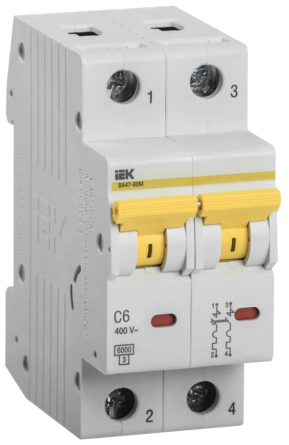 Технические характеристики IEK ВА47-60M 2Р 6А 6кА С MVA31-2-006-C