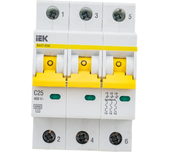 Преимущества IEK ВА47-60M 3Р 25А 6кА С MVA31-3-025-C