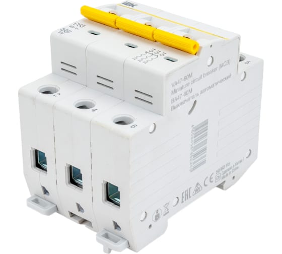 Преимущества IEK ВА47-60M 3Р 63А 6кА С MVA31-3-063-C