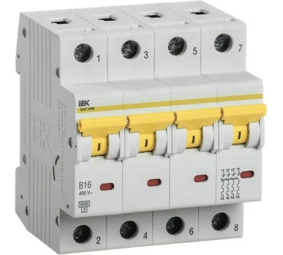 Преимущества IEK ВА47-60M 4Р 16А 6кА B MVA31-4-016-B