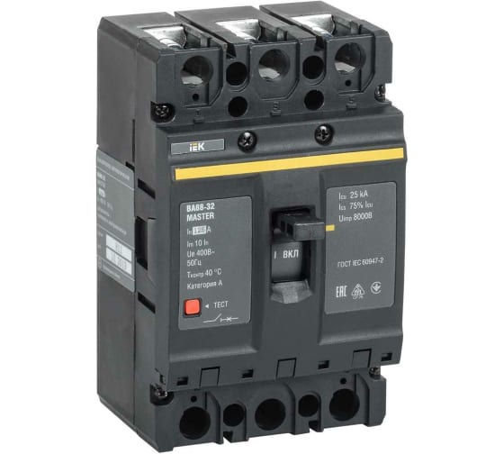Автоматический выключатель IEK ВА88-32 3Р 125А 25кА MASTER SVA10-3-0125-02 предназначен для защиты электрических сетей от токов короткого замыкания, токов перегрузки, недопустимых снижений напряжения, а также для проведения тока в нормальном режиме.