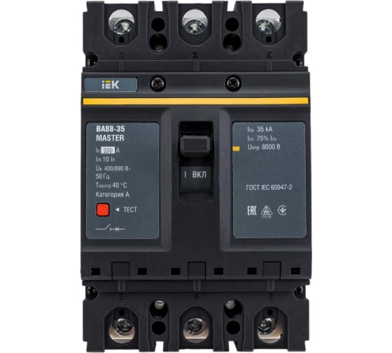 Автоматический выключатель IEK ВА88-35 3Р 250А 35кА MASTER SVA30-3-0250-02 предназначен для защиты электрических сетей от токов короткого замыкания, токов перегрузки, недопустимых снижений напряжения, а также для проведения тока в нормальном режиме.