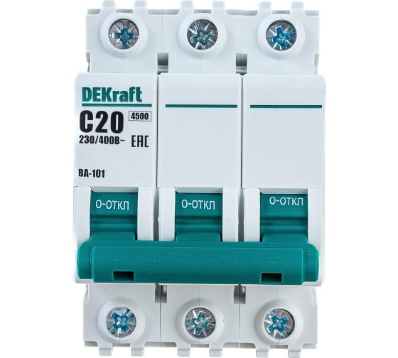 Преимущества DEKraft ВА101-3P-020A-C 3п 20А C 4.5кА 11079DEK 121920