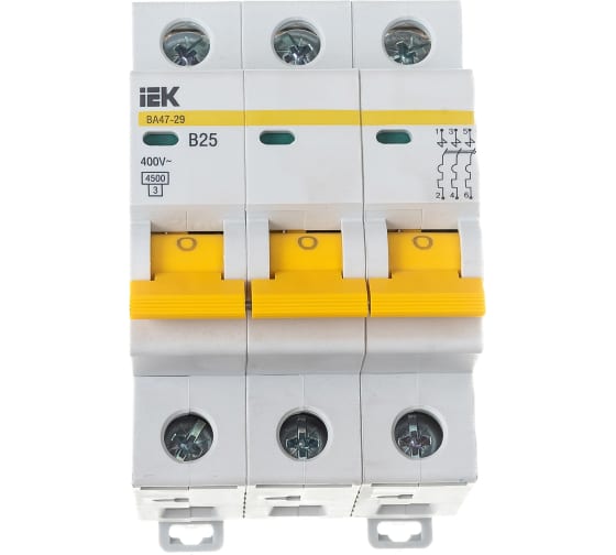 Преимущества IEK ВА47-29 3п, B, 25А, 4.5кА MVA20-3-025-B