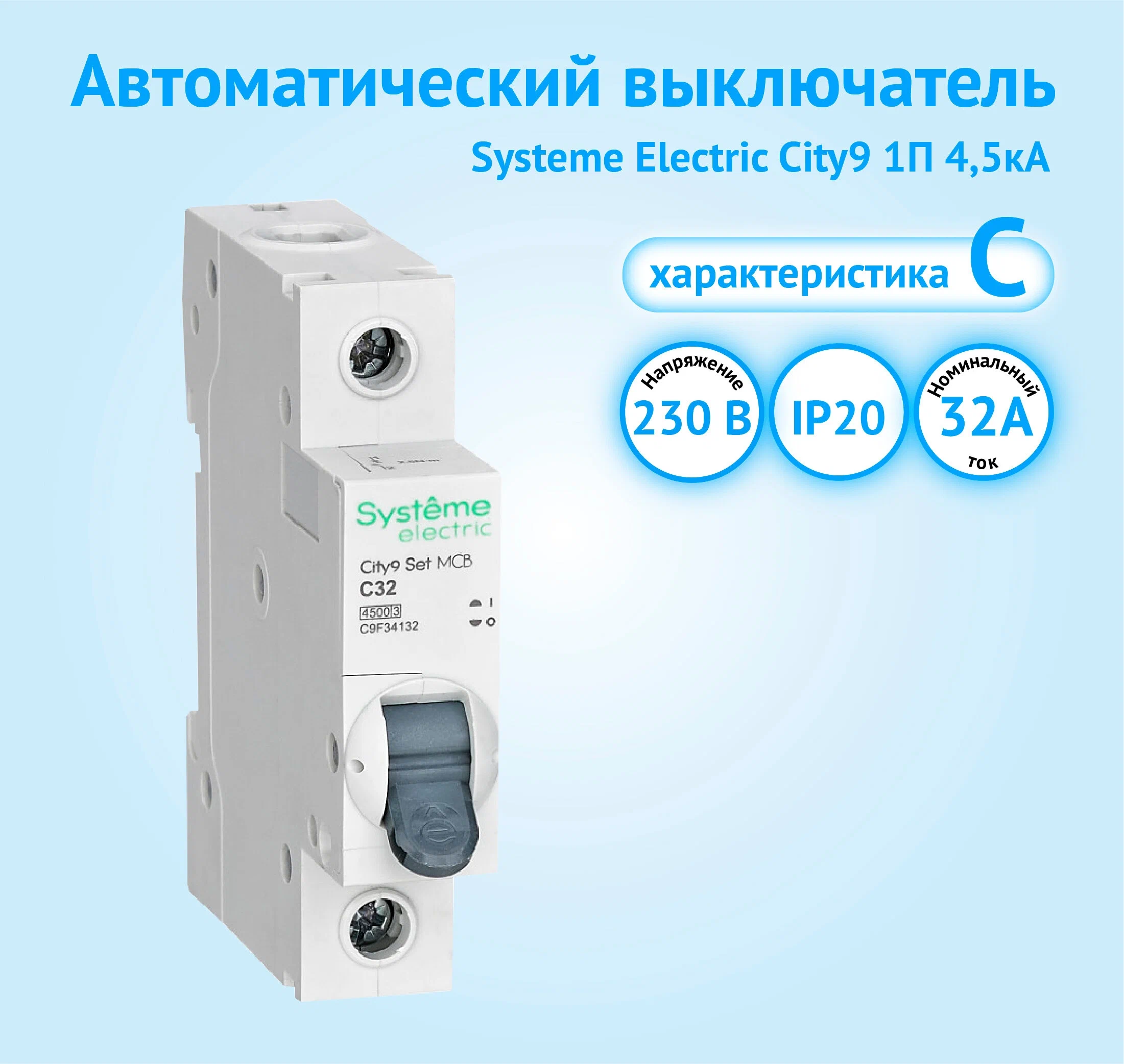 Технические характеристики Systeme Electric City9 set ав с 32а 1p 4.5ka 230в C9F34132