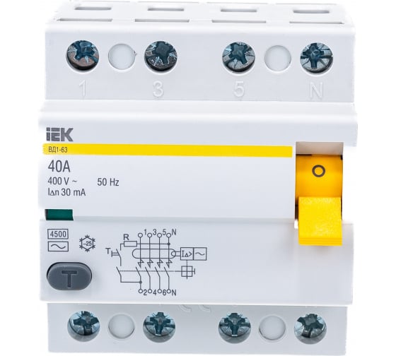 Технические характеристики IEK ВД1-63 4п, AC, 40А, 30мА MDV10-4-040-030
