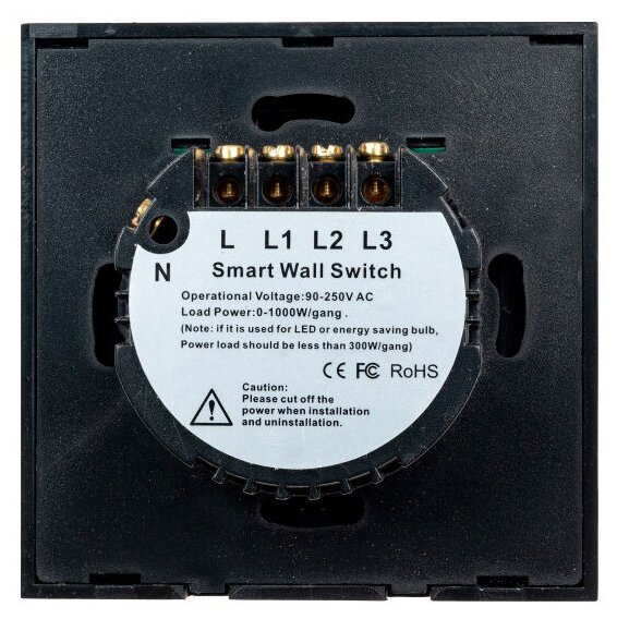 Умный выключатель чёрный (3 клавиши) Powerlite-WS3B
