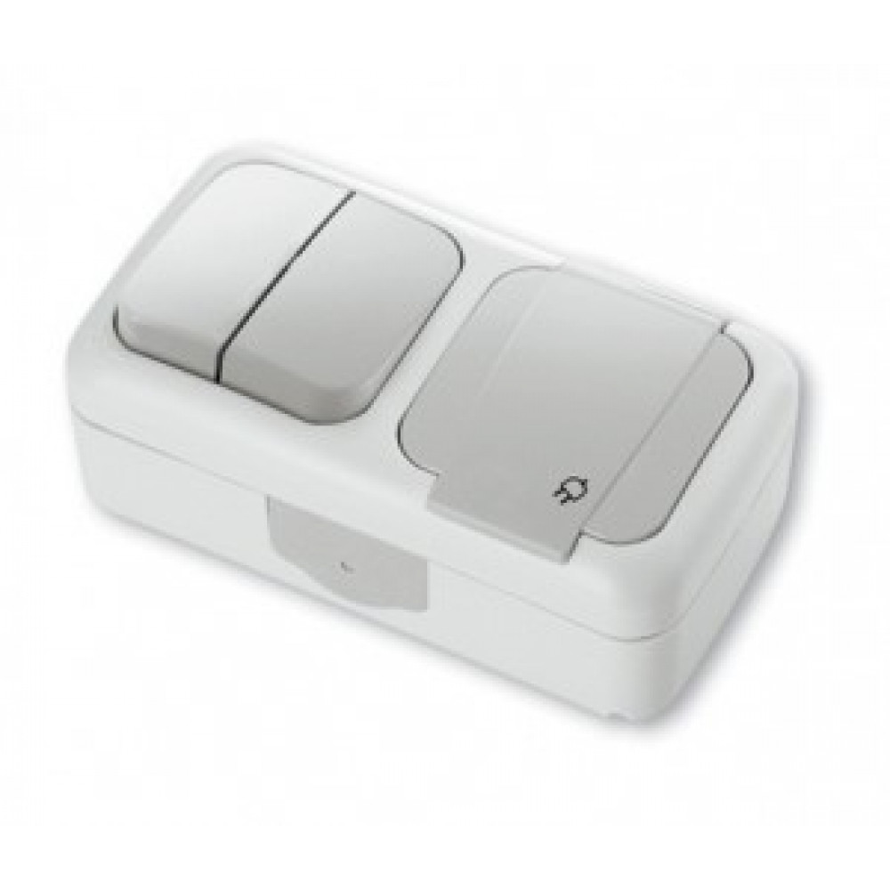PALMIYE в. Блок переключатель на 2 направления с подсветкойРозетка с заземлением, белый Моноблок. Для применения во влажной и агресивной среде PALMIYE в. Блок переключатель на 2 направления с подсветкойРозетка с заземлением, белый