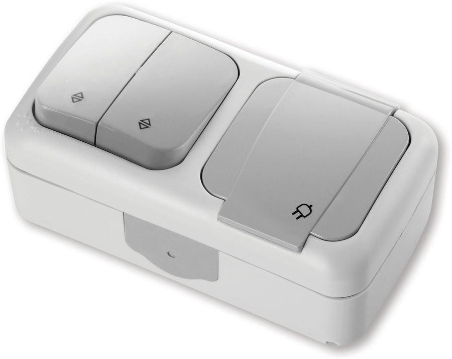 Описание: Блок переключатель на 2 направления двухклавишный + Розетка