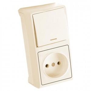 VERA Блок Выключатель с подсветкой+Розетка, вертикальный, кремовый Моноблок для наружнего монтажа VERA Блок Выключатель с подсветкой+Розетка, вертикальный, кремовый