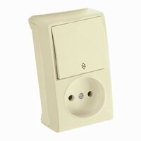 VERA Блок переключатель на 2 направления+Розетка, вертикальный, кремовый Моноблок для наружнего монтажа VERA Блок переключатель на 2 направления+Розетка, вертикальный, кремовый