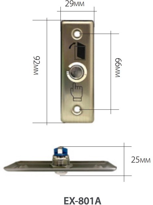 Врезная механическая кнопка выхода ZKTeco EX-801A без светодиодной подсветки. Изготовлена из нержавеющей стали