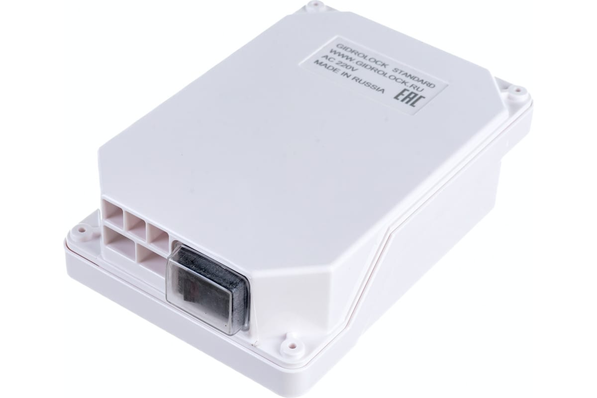 Блок управления Gidrolock STANDARD 20500132 предназначен для контроля за состоянием проводных датчиков протечки воды, подключенных к системам GIDROLOCK. Управляет шаровыми кранами с электроприводами Gidrolock 220V и выдает звуковое оповещение при возникновении аварии в системах водоснабжения и отопления.