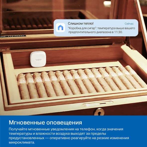 Уведомления — получайте уведомления на телефон, когда значения температуры и влажности воздуха выходят за пределы предустановленных.