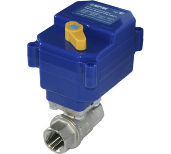 Кран с электроприводом Neptun Bugatti Pro 220B 1 исполнительное устройство для систем контроля протечки воды. Устройство перекрывает воду в случае протечки. Электропривод обеспечивает вращение шарового крана при закрытии и открытии. Электропривод выполнен в герметичном корпусе со степенью защиты IP65. Корпус крана выполнен из горячекованой латуни, выдерживает давление в 40 бар. Передача сигнала осуществляется проводным способом.