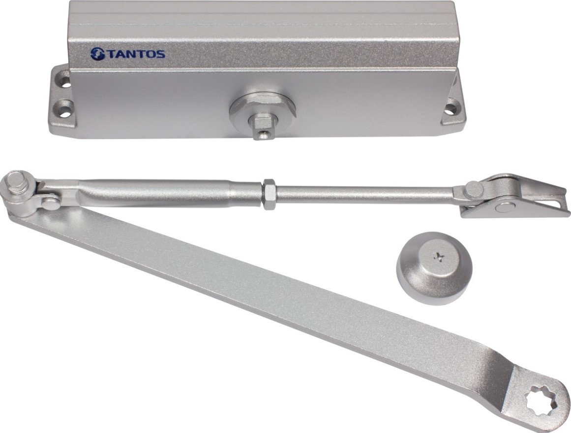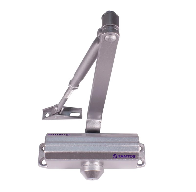 TANTOS TS-DC085 серебро - доводчик дверной с усилием EN4 для дверей весом до 100 кг. Предназначен для плавного закрытия двери и гарантированного срабатывания запирающего устройства (замка, защелки). Имеет две регулировки: скорости закрывания и скорости доводки.
