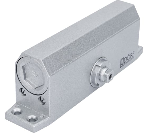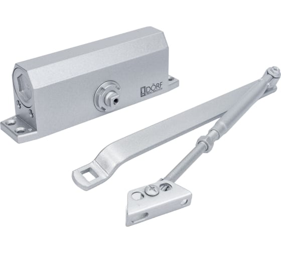Дверной доводчик DORF 110 кг, серебро L8224_silver верхнего расположения для внутренних и межкомнатных дверей любого типа. Доводчик с верхней установкой и зубчатым приводом, выполнен по стандартам ISO9001. Регулировка скоростей. Гарантия 2 года.