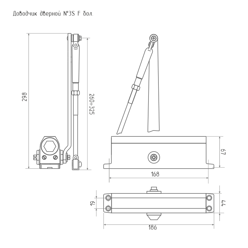 Доводчик дверной НОРА-М 3S-F (13705) Золото