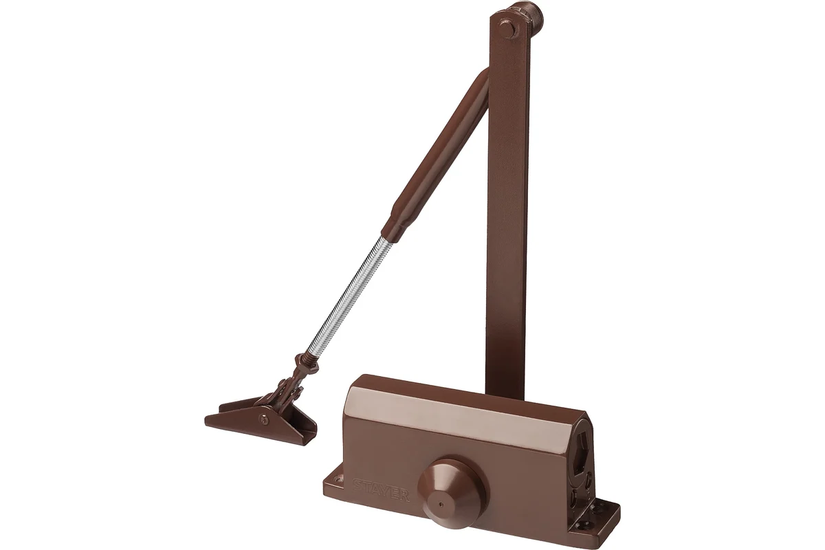 Технические характеристики доводчика STAYER для дверей массой до 40 кг, цвет коричневый