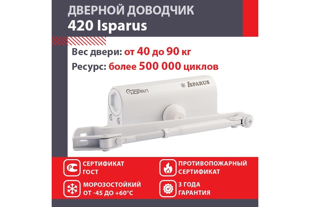 Дверной доводчик НОРА-М Isparus 420 морозостойкий, для дверей от 40 до 90 кг, белый 18719 - это модель гидравлических дверных доводчиков, сочетающая в себе надежность и экономичность исполнения.