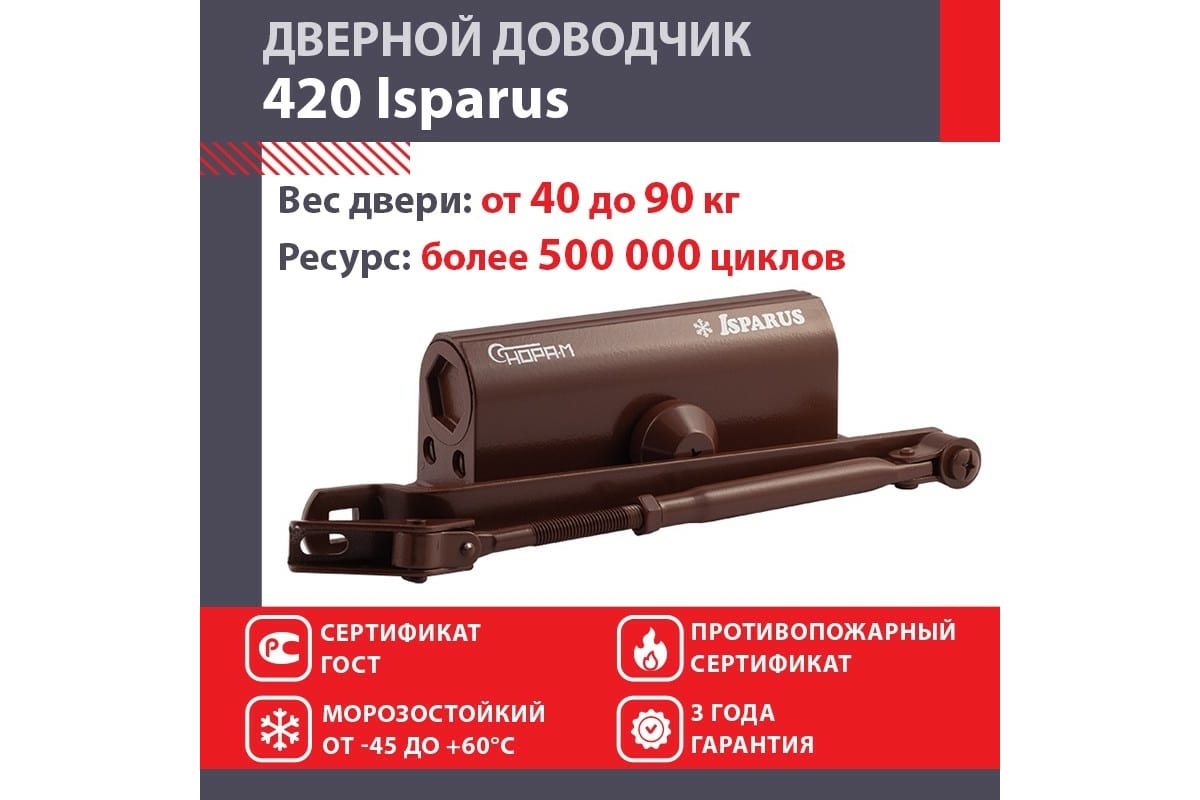 Дверной доводчик НОРА-М Isparus 420 морозостойкий, для дверей от 40 до 90 кг, коричневый 18722 - это модель гидравлических дверных доводчиков, сочетающая в себе надежность и экономичность исполнения.