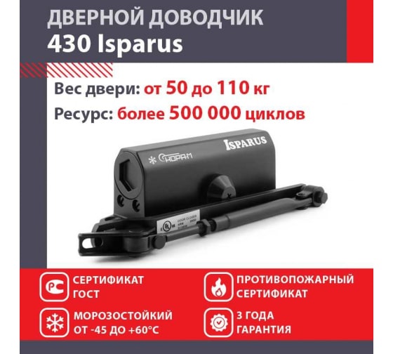 Преимущества доводчика ISPARUS от 50 до 110 кг черный