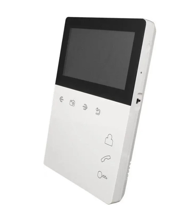 Монитор домофона с экраном 4,3 дюйма со встроенным блоком питания. Всё управление осуществляется сенсорными кнопками.