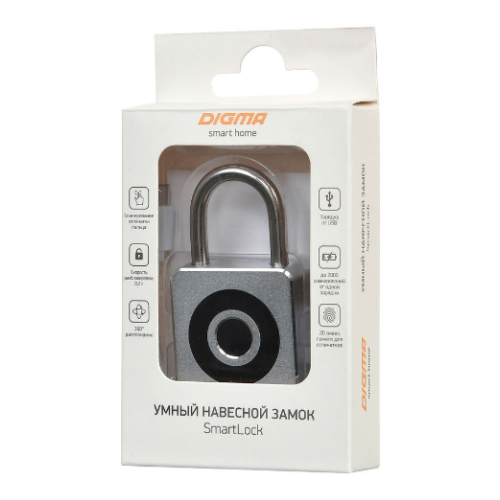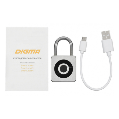 Комплектация товара Умный замок Digma SmartLock C1 навесной разбл.отпеч.паль. 100mAh титановый (SRC1) зависит от конкретной поставки и может меняться поставщиком без предварительного уведомления!