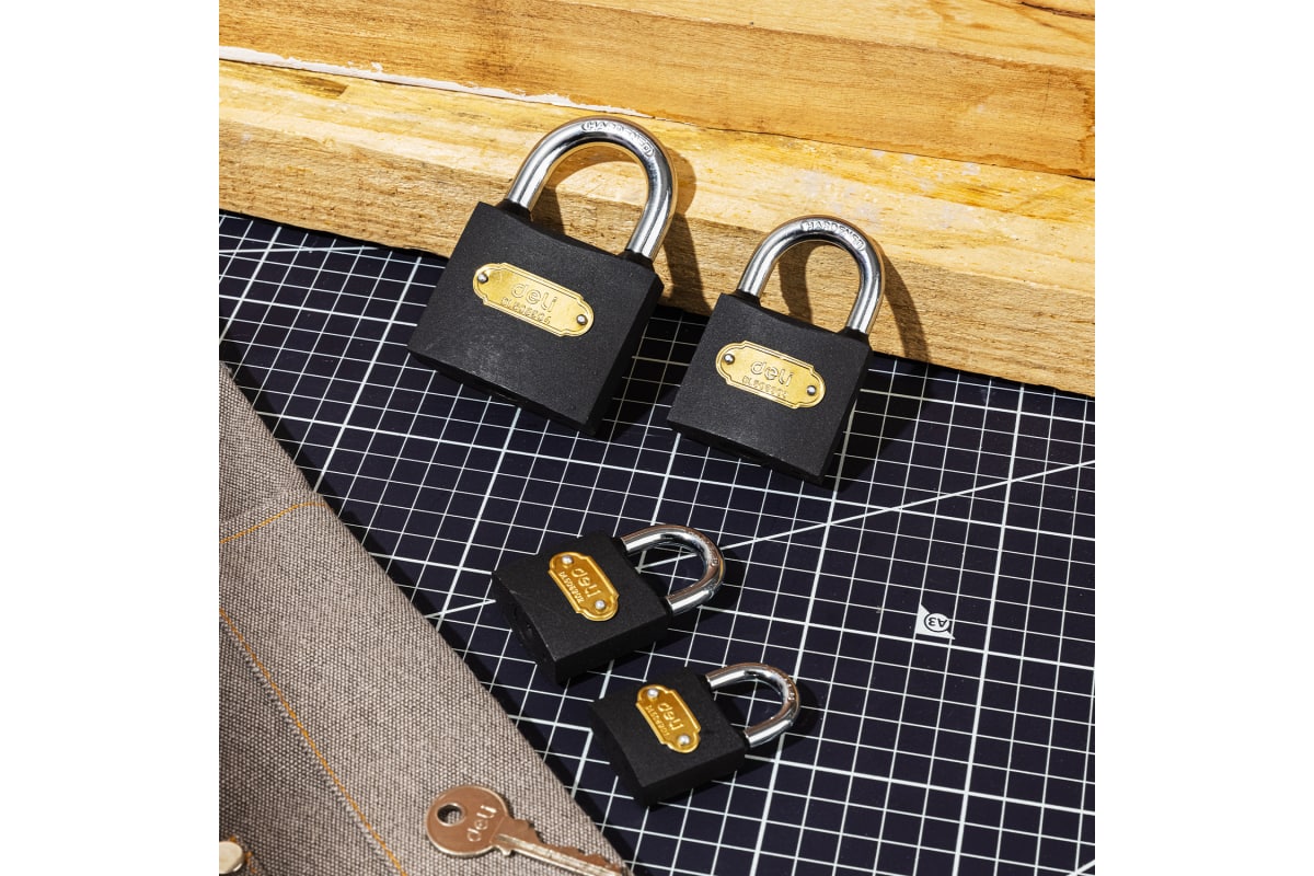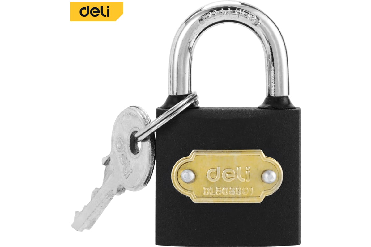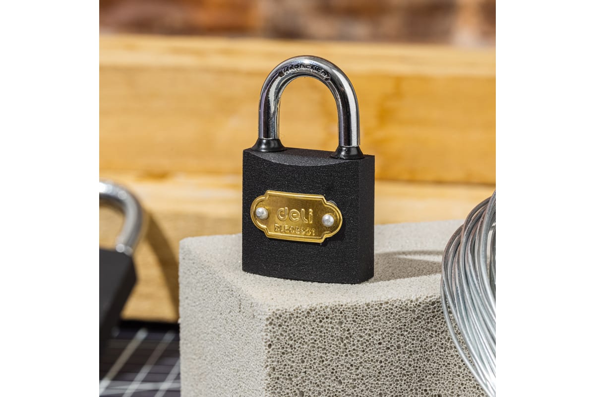 Замок навесной Deli DL508901 предназначен для запирания подсобных помещений, гаражей, калиток, оконных решеток, почтовых ящиков и пр.