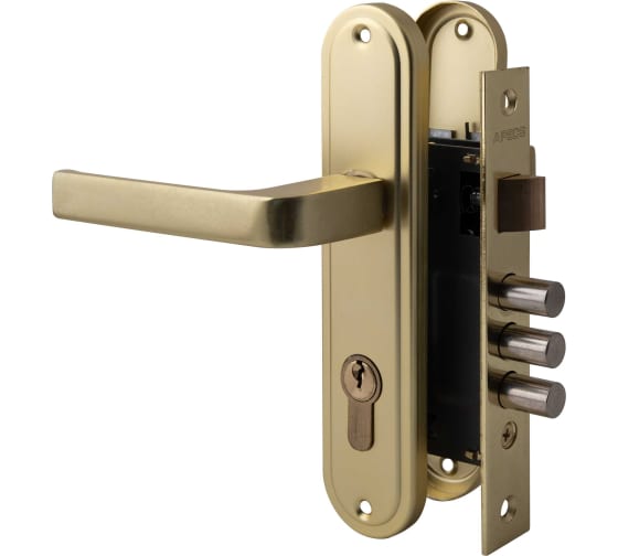 Врезной замок APECS 1026/60-G 0108G 03304 является прочным приспособлением для запирания межкомнатных и входных дверей. Крепится замок с помощью лицевой планки цвета "золото". Рукоятки выполнены из алюминия с анодированным покрытием. Цилиндр выполнен из латуни. В комплекте идет 5 ключей английского типа. Сертифицирован замок на 2 класс по ГОСТ.