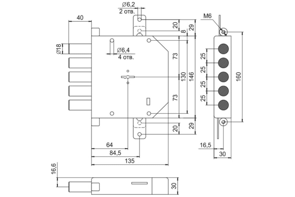 Врезной замок Эльбор Гранит 1.06.12 - усиленный 6-ти сувальдный замок. Соответствует наивысшему 4 классу защиты по ГОСТ 5089-2011. Не имеет лицевой планки и с торца крепится на бонки. Сверху и снизу – выходы под тяги. Рекомендуется врезать в металлические и бронированные двери толщиной 40-80 мм.