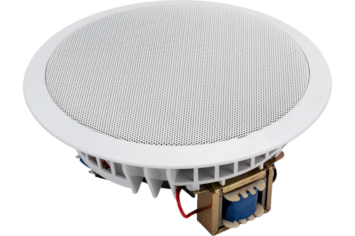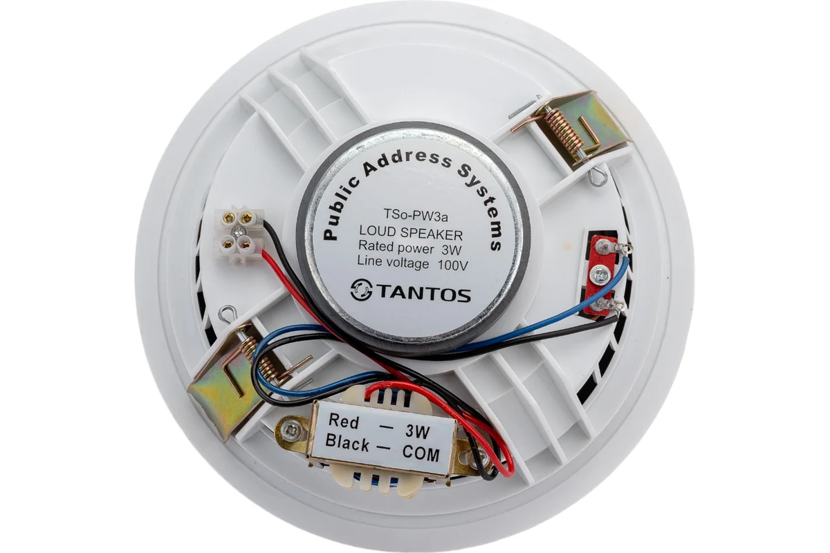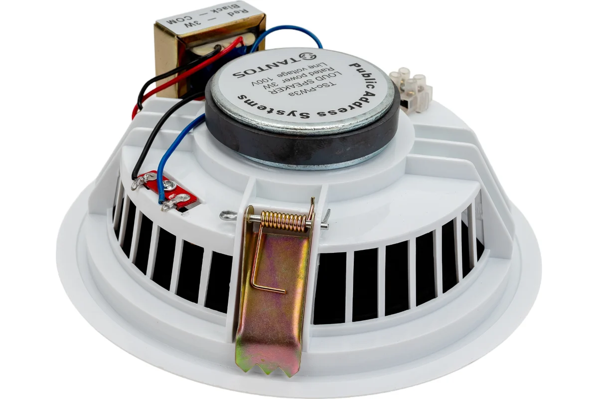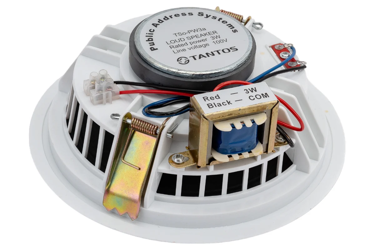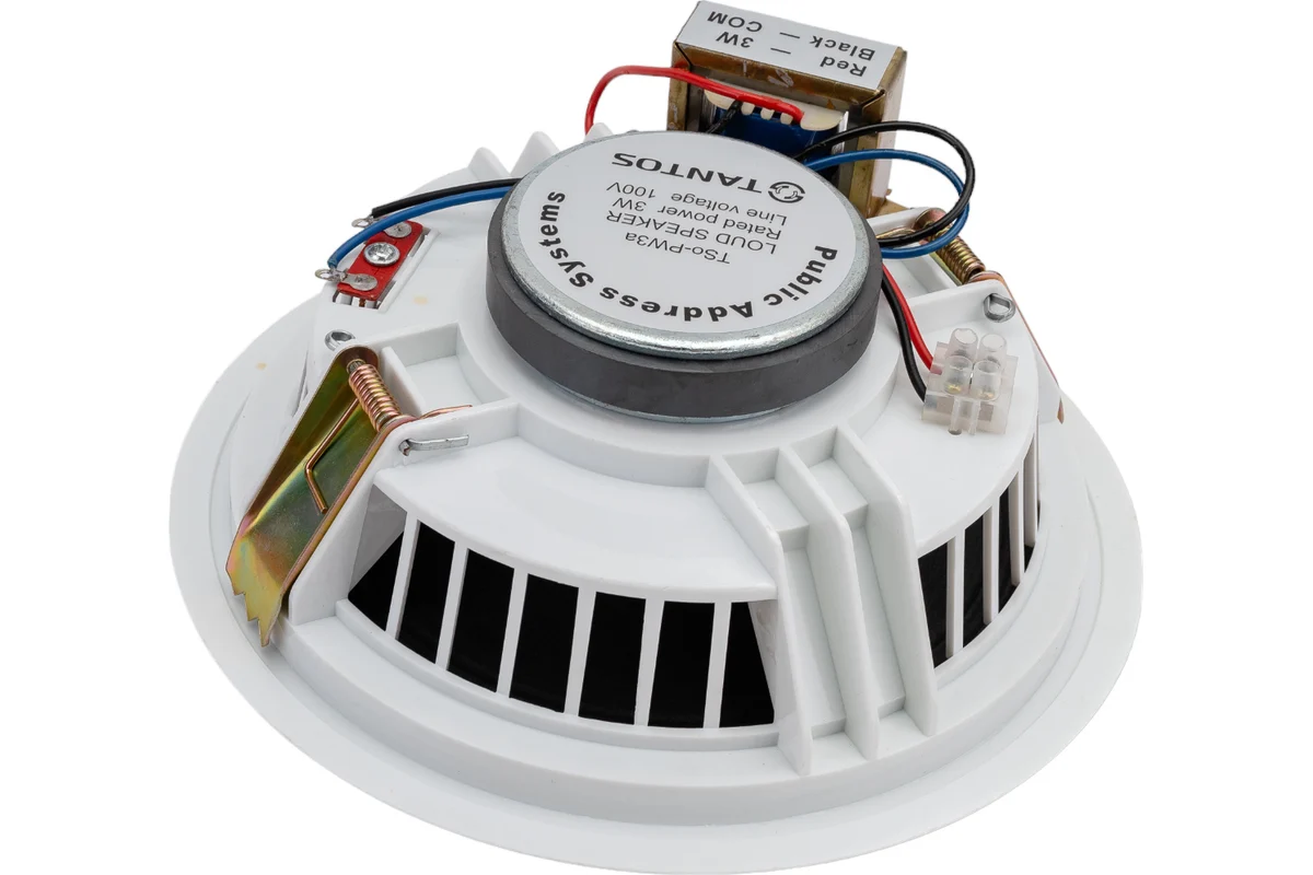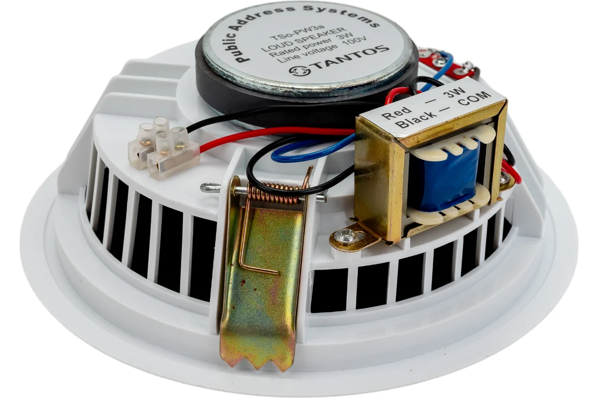 Потолочный громкоговоритель Tantos TSo-PW3a легко закрепить за счет сравнительно небольшого веса. Основную площадь фронтальной панели занимает динамик.