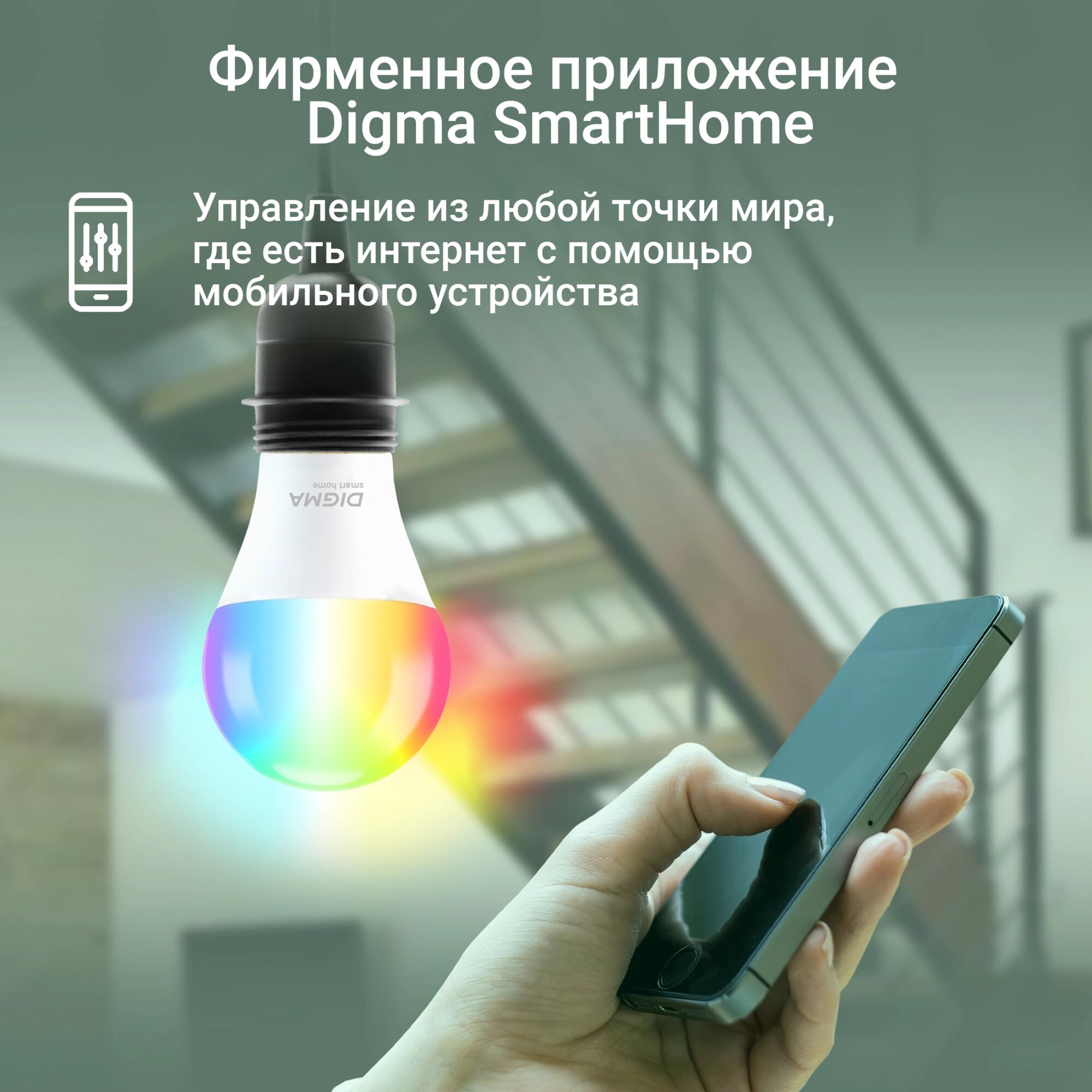Лампы серии Digma DiLight предназначены для использования в качестве источника освещения внутри помещений. Устройства снабжены функцией дистанционного контроля через сеть интернет посредством мобильного приложения.