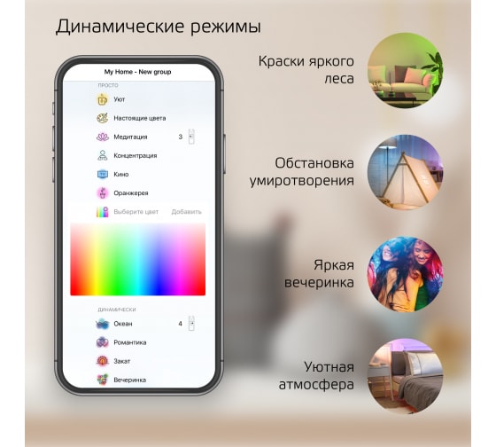 Сцены: понравился режим в той или иной комнате? Зафиксируйте его в сцене и включайте одним кликом на смартфоне.