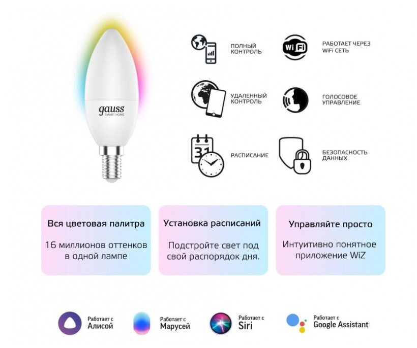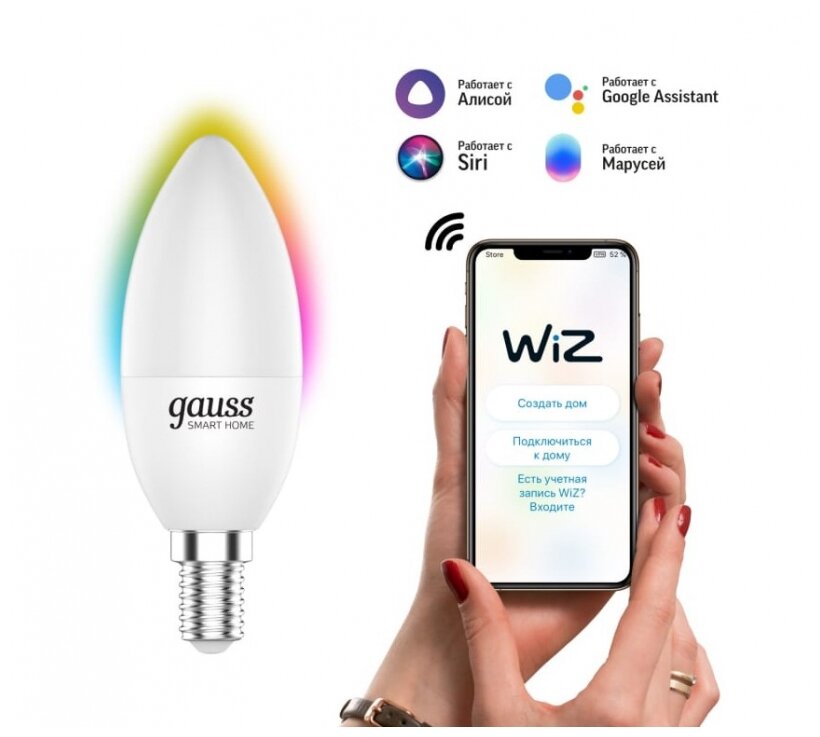 Изменение яркости, оттенка света и цвета голосом или с помощью мобильного приложенияНапряжение