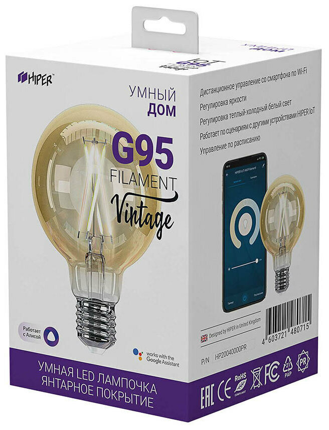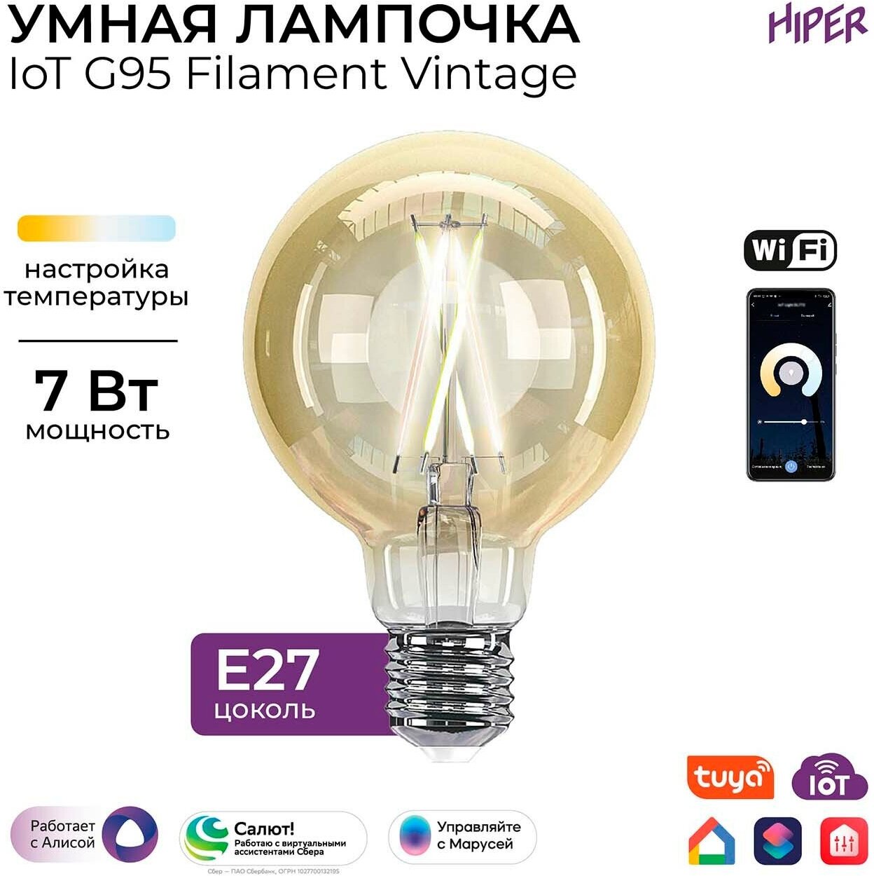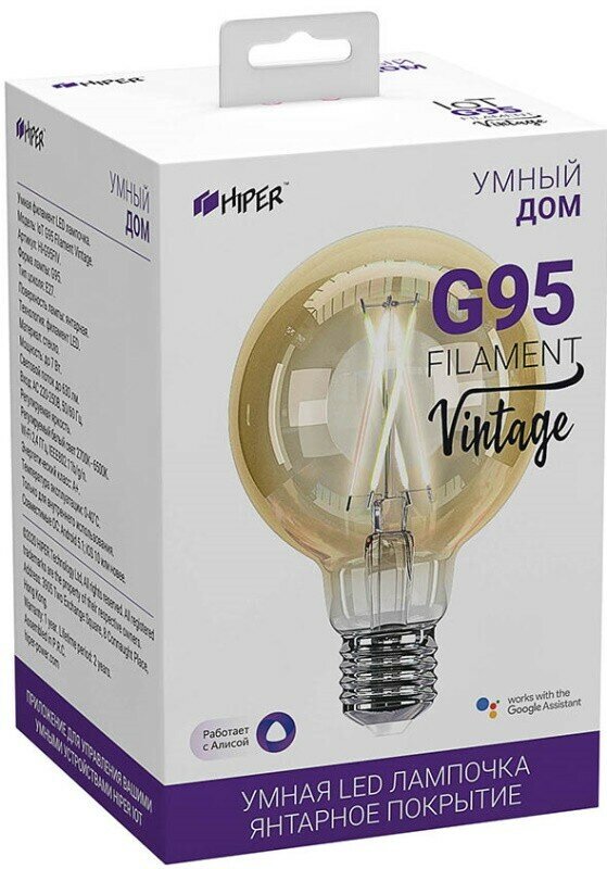 Умная LED лампочка с оригинальным винтажным дизайном, поддерживает удаленное управление через приложение HIPER IoT. Могут быть использованы в качестве самостоятельных декоративных светильников.