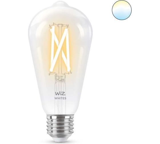 Лампа Wiz Wi-Fi BLE60WST64E27927-65CL1PF/6 929003018601 выполнена в ретро-дизайне с нитью и обеспечивает теплый или холодный белый свет. Используйте лампу с приложением WiZ или голосовые команды, чтобы снизить или увеличить яркость, либо воспользуйтесь предварительно установленными режимами освещения в разделе настроек сети Wi-Fi.