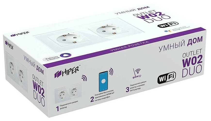 Умная встраиваемая двойная розетка Outlet W02 Duo рассчитана на работу с электроприборами до 3,8 кВт, с кнопками включения/выключения на корпусе. Предназначена для удаленного включения/выключения электроприборов, а также является частью экосистемы HIPER IoT.