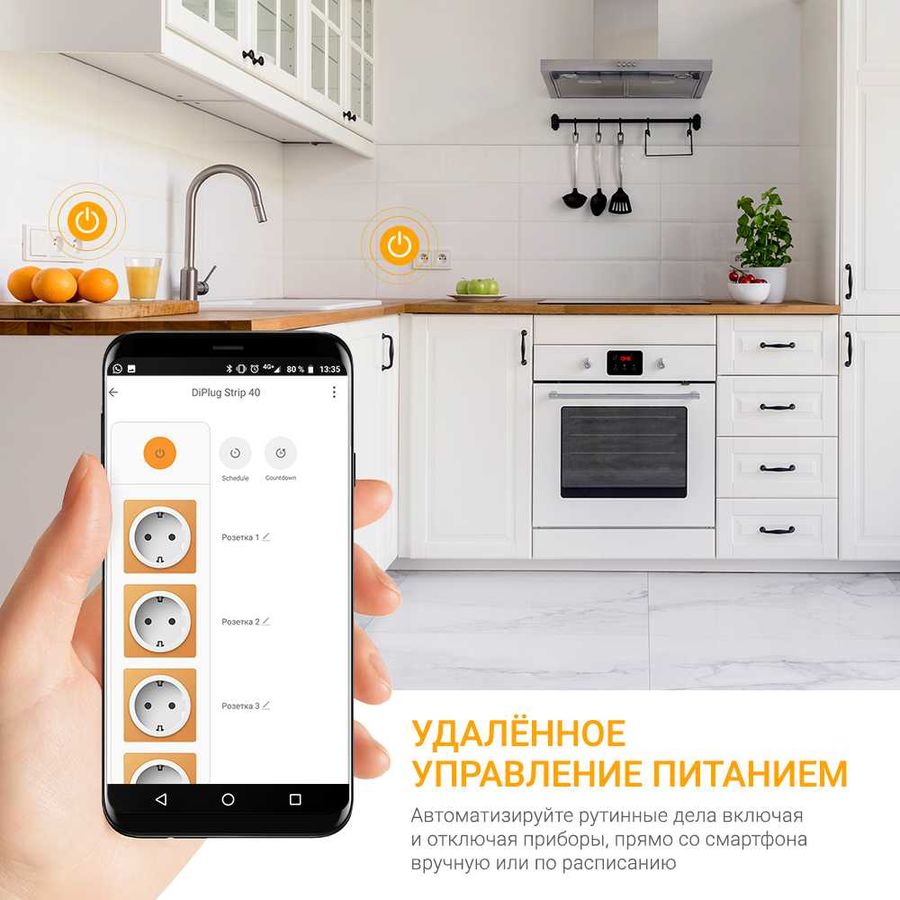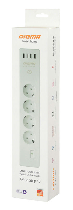 Описание: Умный удлинитель DiPlug Strip40 позволяет организовать автоматическое включение любых 4 устройств по сценариям. Все управление производится через приложение в смартфоне из любой точки мира. Так же имеет 4 USB порта.