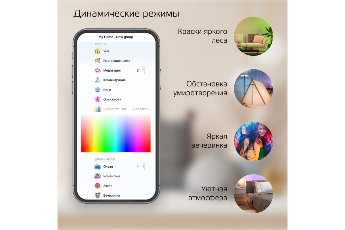 Дистанционное управление: управляйте светом через мобильное приложение или голосовой помощник (Алиса, Siri, Google, Маруся).