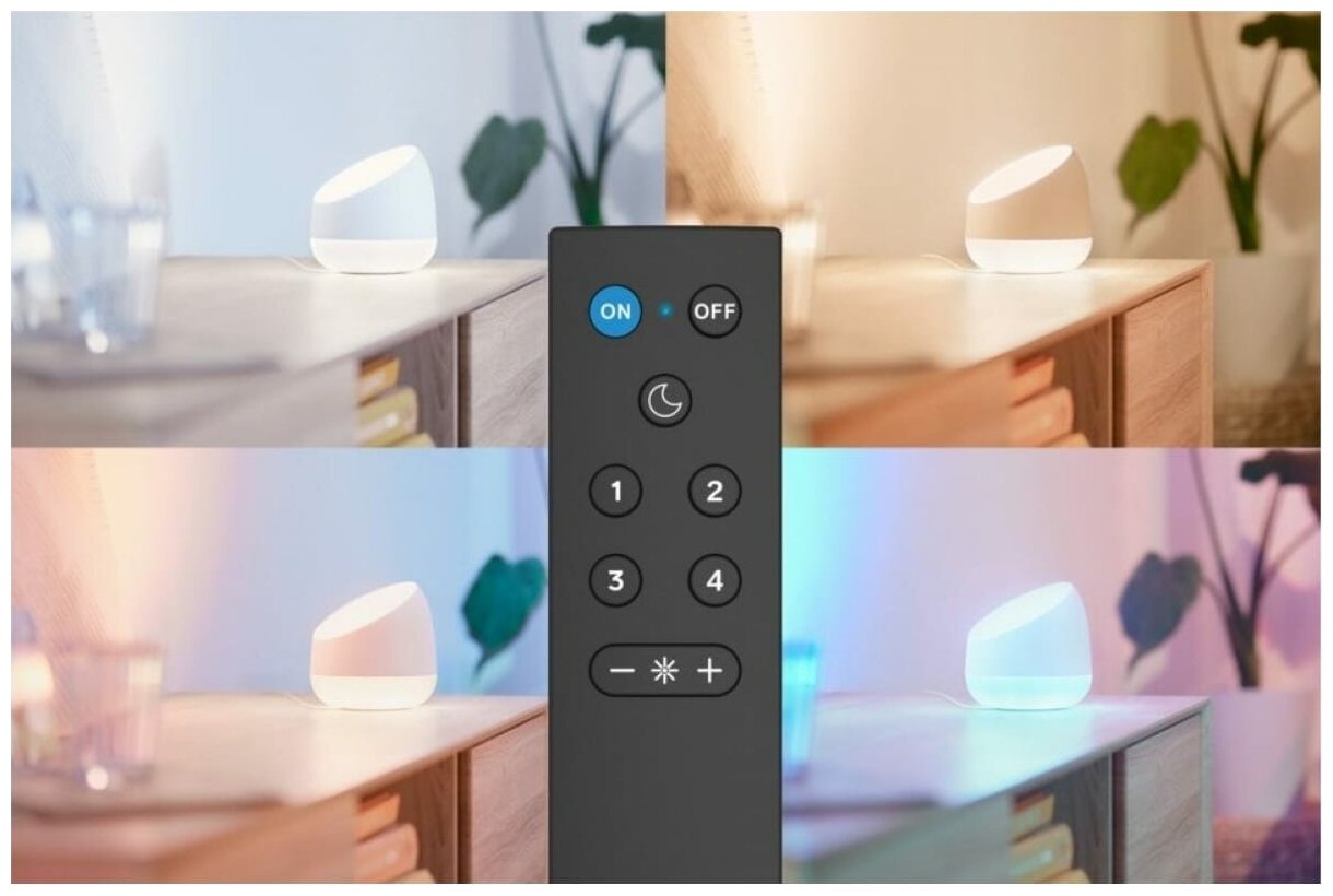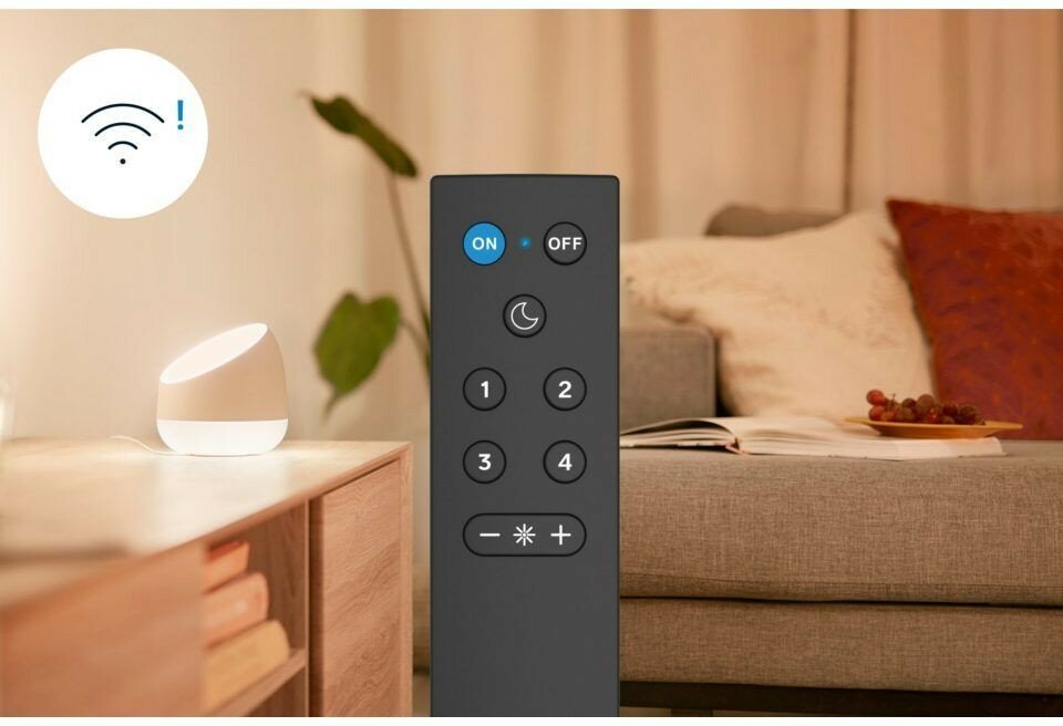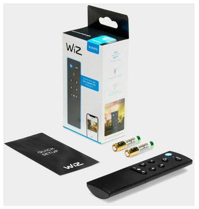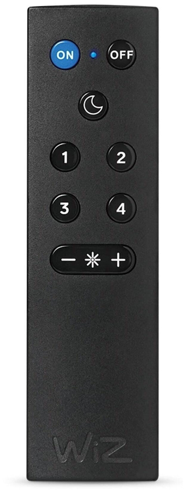Пульт WiZmote позволяет удобно и быстро управлять освещением WiZ. Настройте включение и отключение света, регулировку яркости, переключение на ночник и выбор одного из 4 избранных режимов освещения всего одним нажатием кнопки. Работает со всеми продуктами WiZ Connected и управляет всем освещением в помещении. Большой диапазон действия до 15 метров, а также возможность работы даже при отключенной сети Wi-Fi. Удобное и быстрое управление Большой радиус действия Управление всем помещением Работает даже без подключения к сети Wi-Fi.