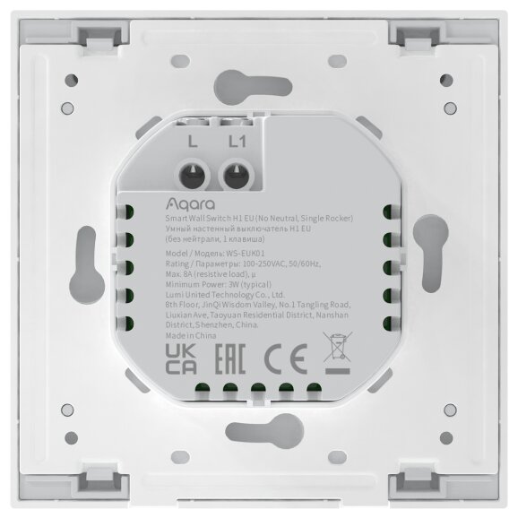 без нейтрали; комплектация: выключатель, винты для крепления, руководство пользователя