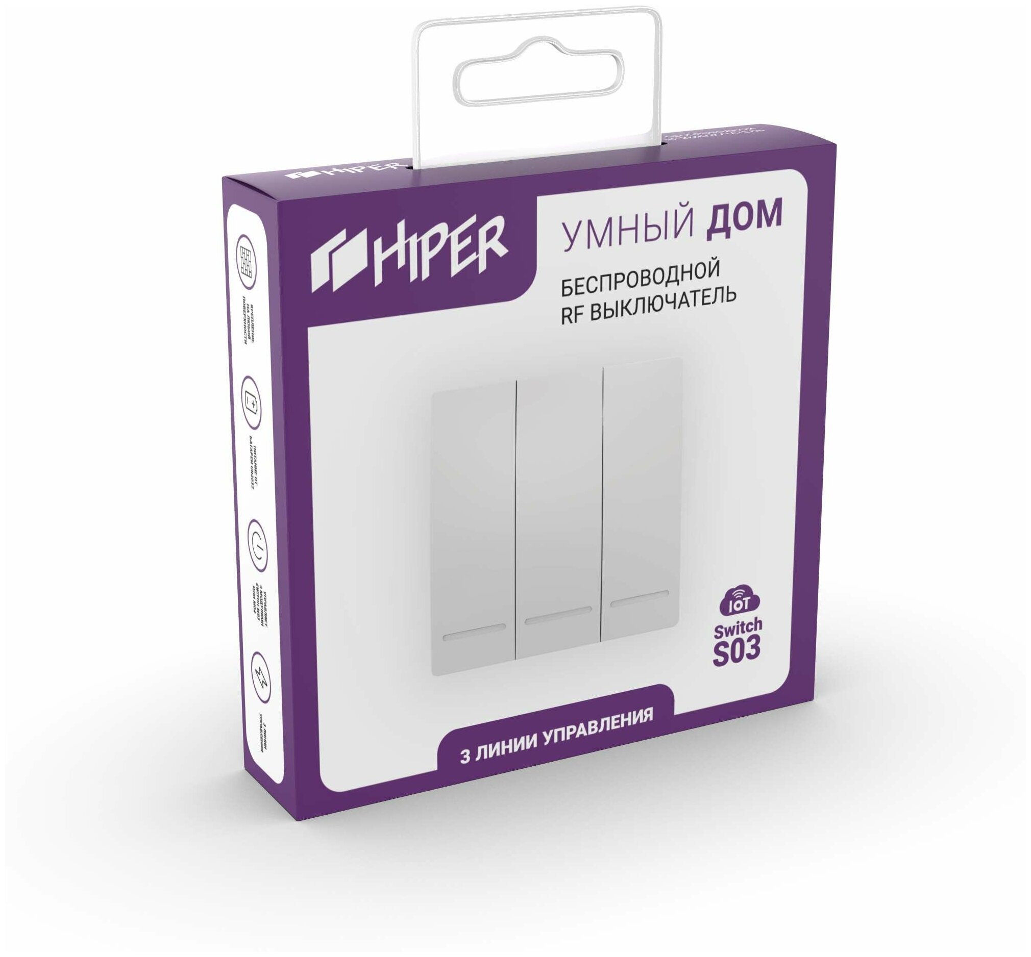 HIPER IoT Switch S03 – это беспроводной RF выключатель, предназначенный для управления 3 умными Wi-Fi модулями Switch M03, Switch M04.