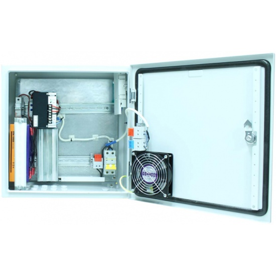 Базовая уличная станция с термостабилизацией, резервным питанием и оптическим кроссом. Промышленный БП DC48V(240W), АКБ 48В(2Ач). Защита АКБ от глубокого разряда. В основе металлический шкаф с классом защиты IP66. Доступное место под установку оборудования на встроенные DIN-рейки: верхняя - 160мм, нижняя - 100мм. Может поставляться со встроенным оборудованием по заказу. Размеры (ШхВхГ): 400x400x210мм. Рабочая температура (температура окружающей среды): -40…+50°С, температура внутри станции 0…+50°С.