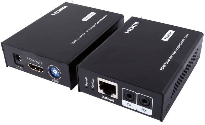- Подключение : передатчик: HDMI (A)x 1; RJ45 (витая пара)х 1; TRS3,5мм(ИК); DC5.5мм приемник: HDMI (A)x 1; RJ45 (витая пара)х 1; TRS3,5мм(ИК); DC5.5мм (роз.)