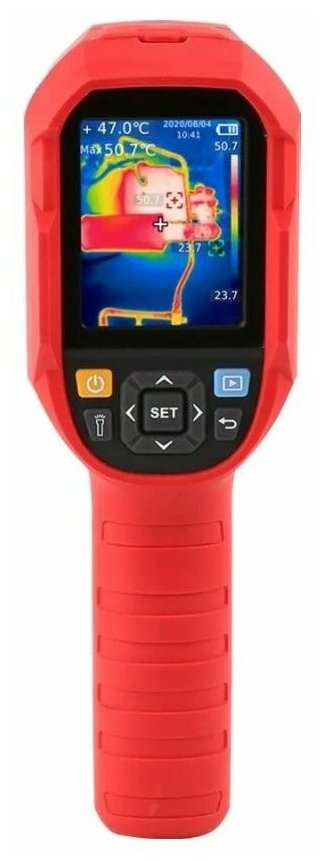 Сенсор: Не охлаждаемая фокальная камера. Температурный диапазон: 30˚C~45˚C. Разрешение: 0.1˚C. Погрешность: ±0.5˚C с расстояния 1 метр. Минимальное расстояние при измерении: 1 метр. Время получения показаний: ≤500 миллисекунд. Кол-во пикселей измеряемого сенсора: 49152 (256×192). Размер пикселей: 12μm. Режимы измерения: Черно-белый, красно-белый, сине-белый, стальной-красный, полноцветный. Спектральный диапазон: 8~14μm. Оптическое поле зрения: (FOV) 56°(H) × 42°(V). Пространственное разрешение: (IFOV) 3.8 mrad. Температурная чувствительность: <50mk. Частота обновления кадра: <25Hz. Точки измерения на дисплее: Центральная точка измерения температуры, двигающаяся точка показывающая максимальную температуру. Формат сохраненных изображений: BMP. Разрешение дисплея 320×240. Подключение к компьютеру (PC). Интерфейс соединения с компьютером: Type-C USB. Атоматическое выключение: На выбор (5 мин, 10 мин, 30 мин), 30 мин (по умолчанию). Время работы: ≧6 часов. Время зарядки: 4 часа. Сохранение данных: карта Micro SD. Питание: Li-ion аккумулятор 3.7V / 5000 mAh. Дисплей: 2.8" TFT LCD. Размер: 236 мм x 75.5 мм x 86 мм. Комплектация: Инструкция, Кабель Type-C USB, 16GB Микро SD карта. Вес с упаковкой примерно 2.2 кг.